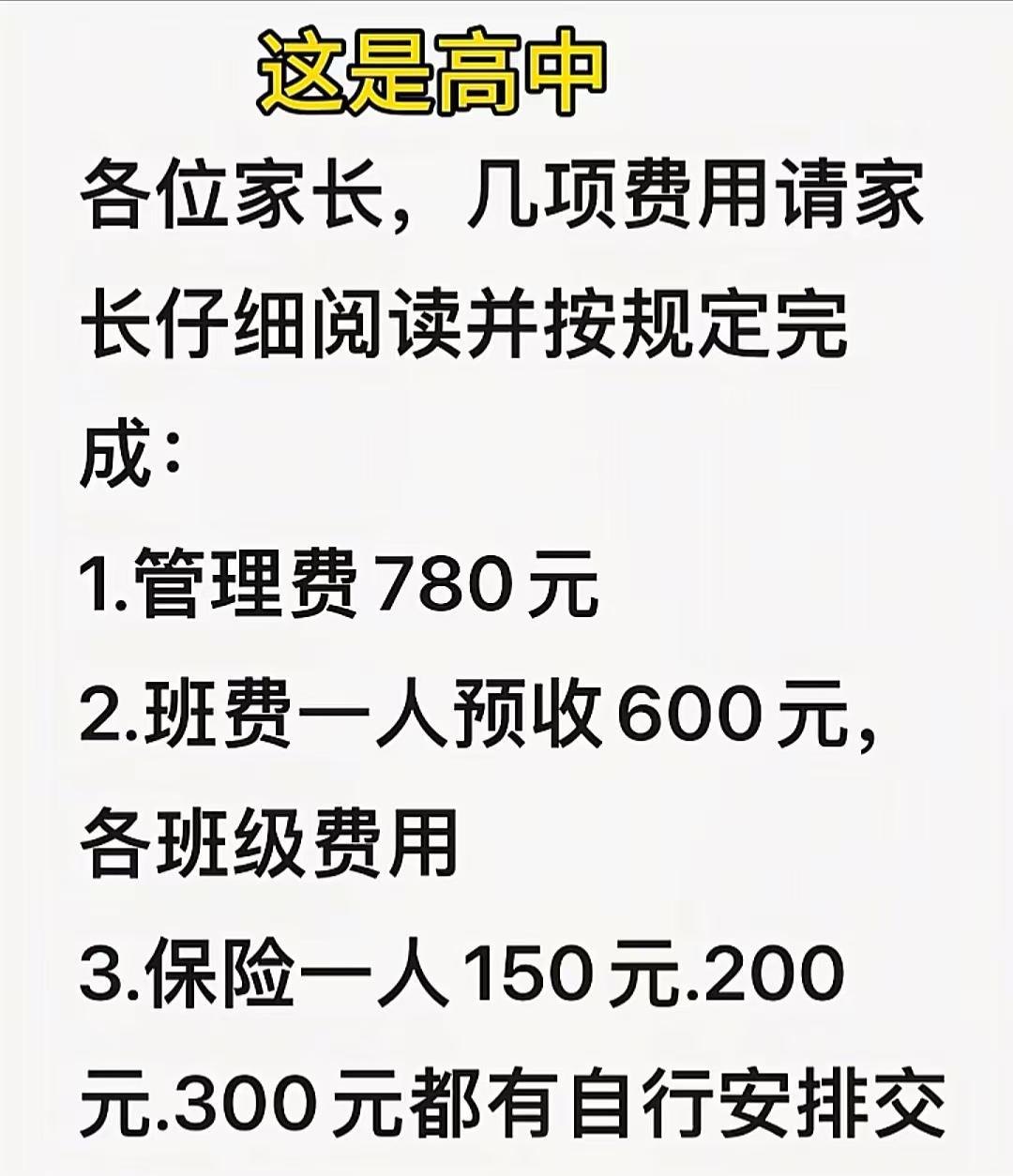 事情发生在江苏,一名家长在孩子开学前收到交费通知,这个家庭里有两个孩子,一个孩子上小学五年级,一个上高中,当他看到两个孩子的交费信息时,瞬间头大了。