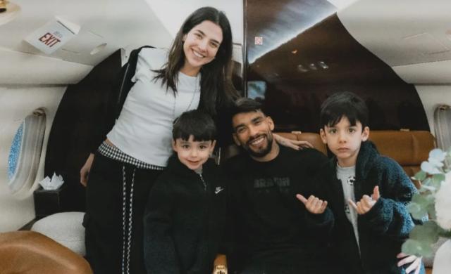 帕奎塔一家四口儿乘坐包机从伦敦飞抵里约。